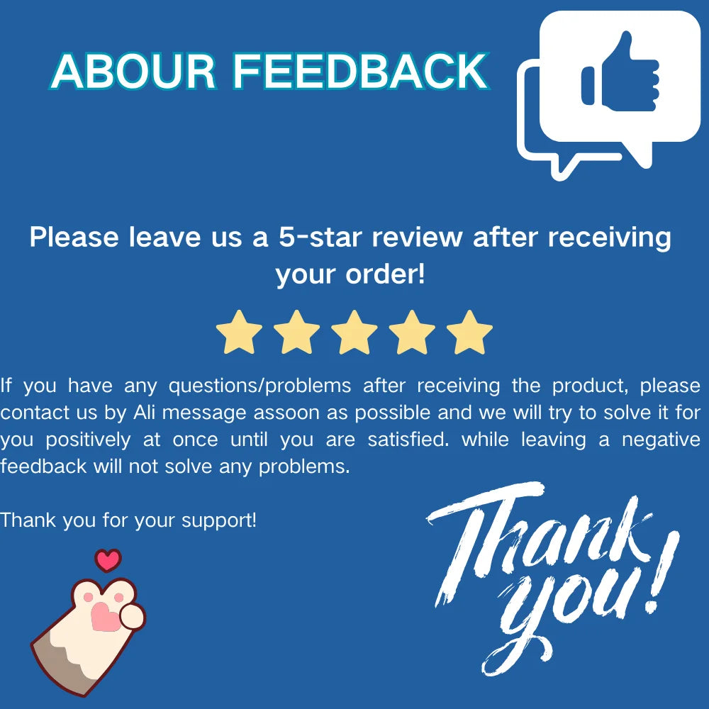 Your positive comments is the driving force for our continuous improvement. We respect and trust every customer to provide you with qualified products and services. If you are satisfied with our products, please give us a five-star positive feedback. If you have any questions/problems after receiving the product, please contact us by E-mail message as soon as possible and we will try to solve it for you positively at once until you are satisfied. Thank you for your support!