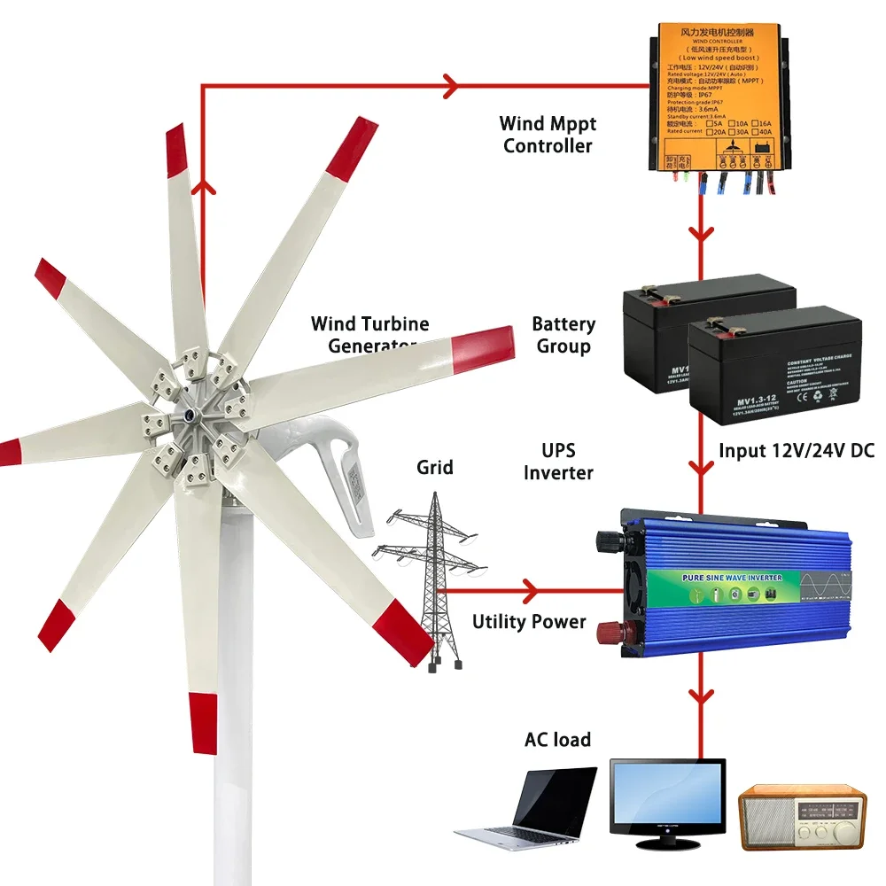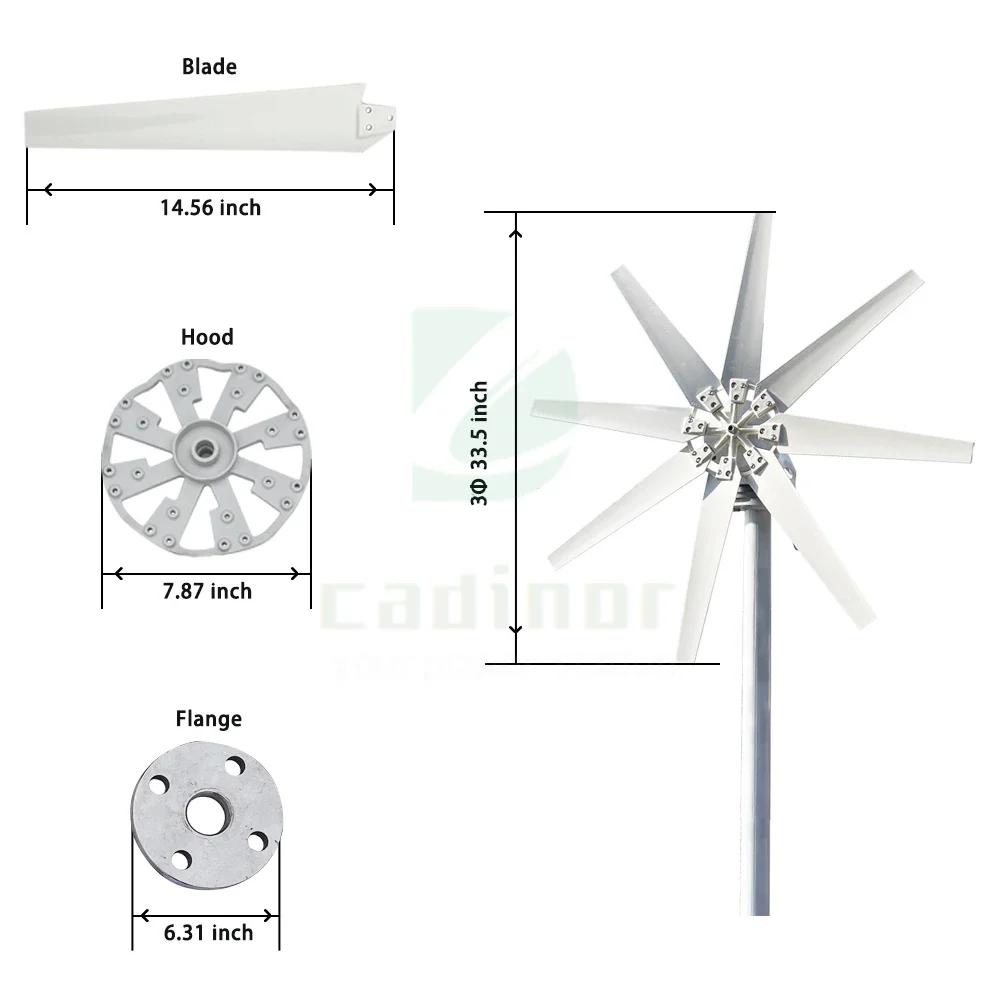 1.wind turbine 1set(hub,tail, blades,generator,hood,bolts and nuts)